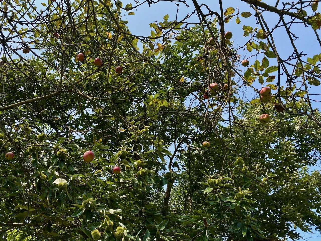 Apples hang from the trees in the Eden Hall orchard.