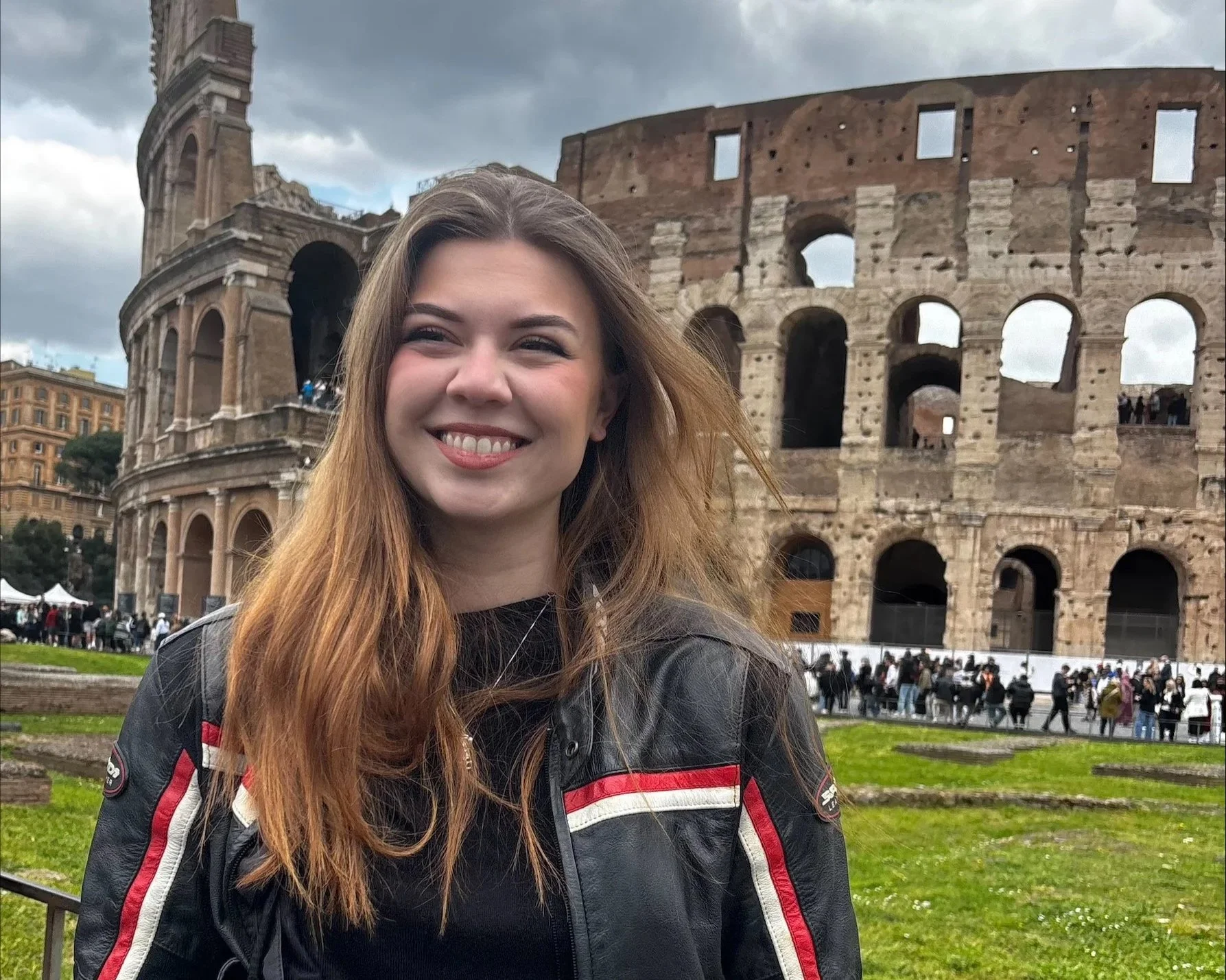 Jet Plutko poses for a photo in Rome with the Colosseum in the background. (Courtesy of Jet Plutko)
